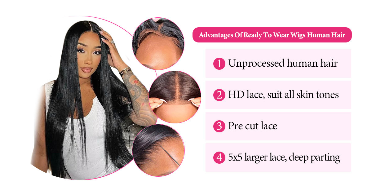 [50% OFF - No Code Needed] 22'' 5x5 Ready to Wear Straight Hair Lace Front Wigs 180% Density