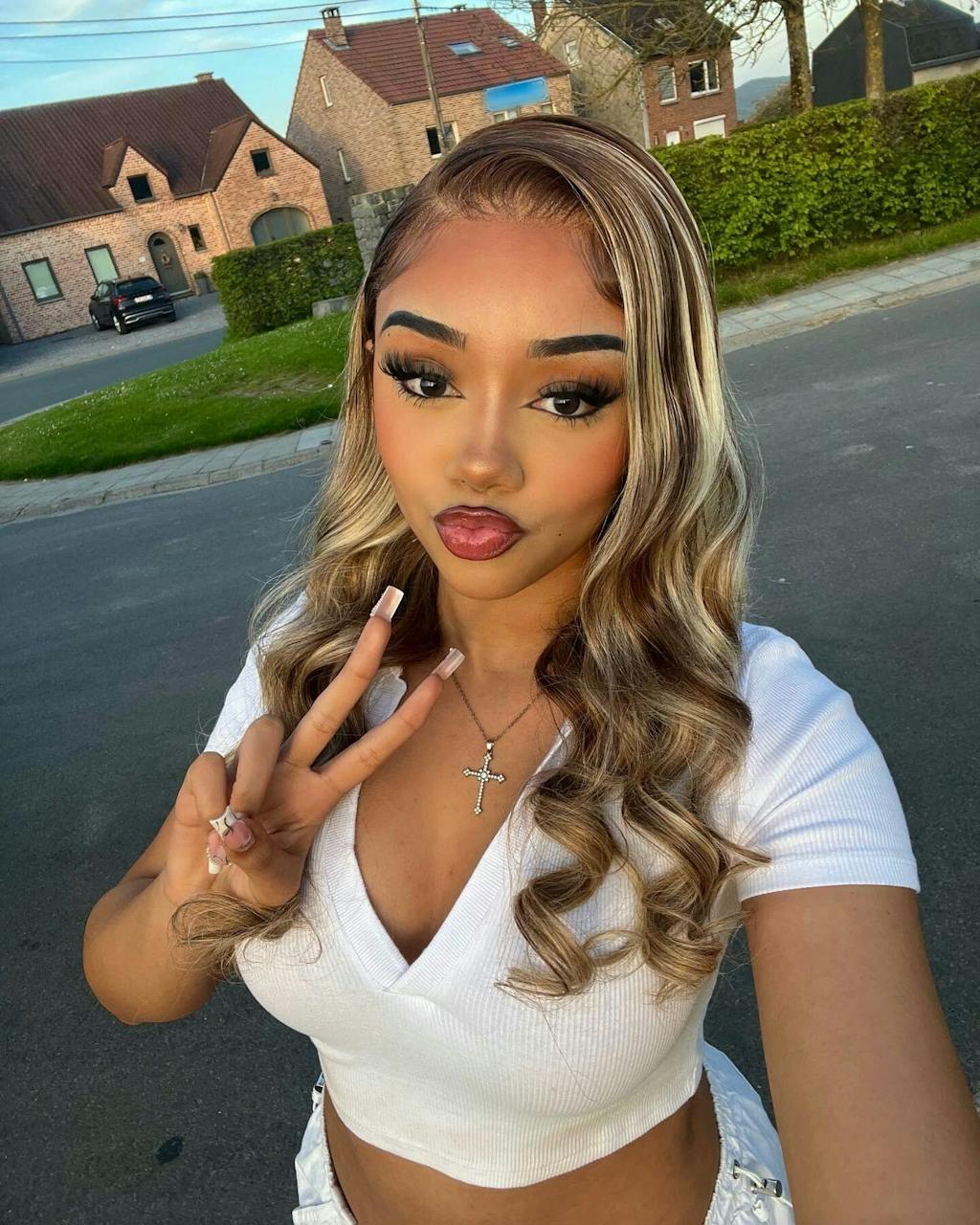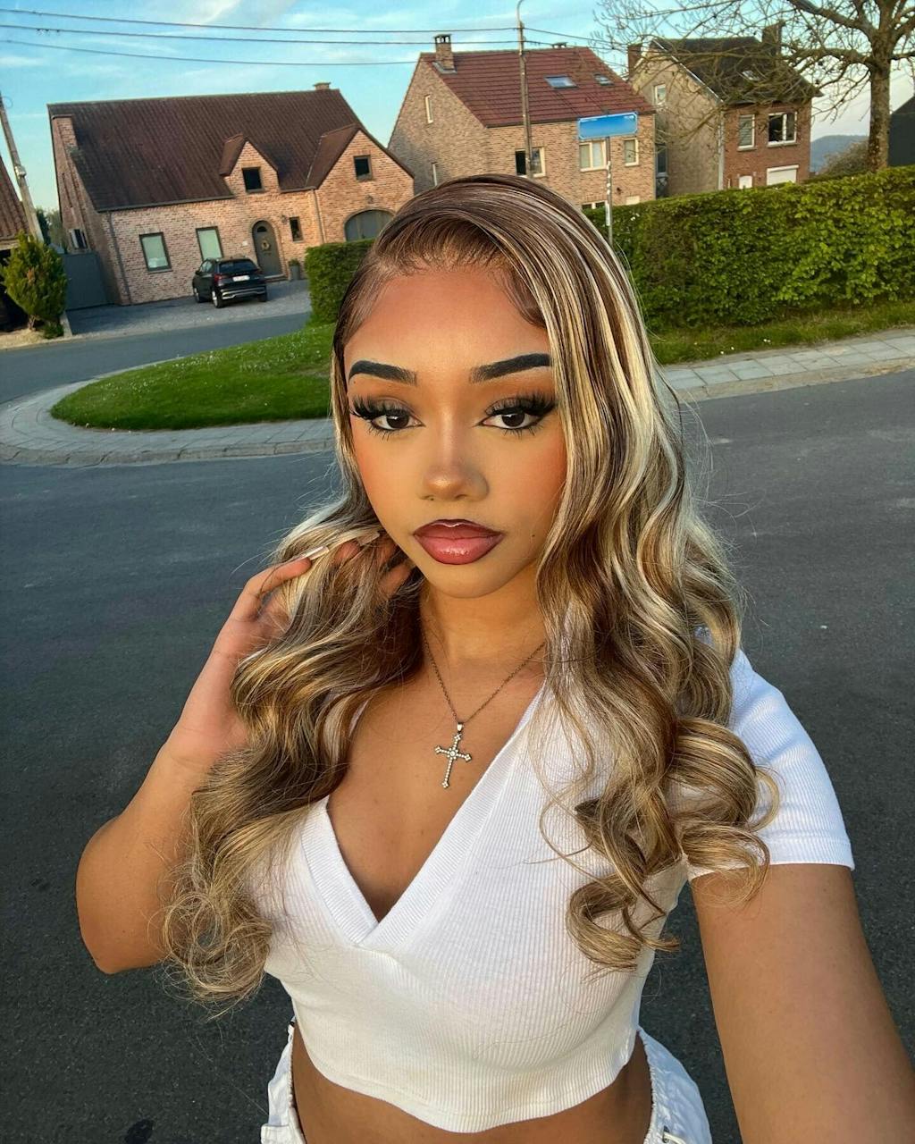 Item: P4/613 Brown With Blonde Highlighted Glueless Human Hair Wig 13x4 Lace Front Body Wave Wigs
